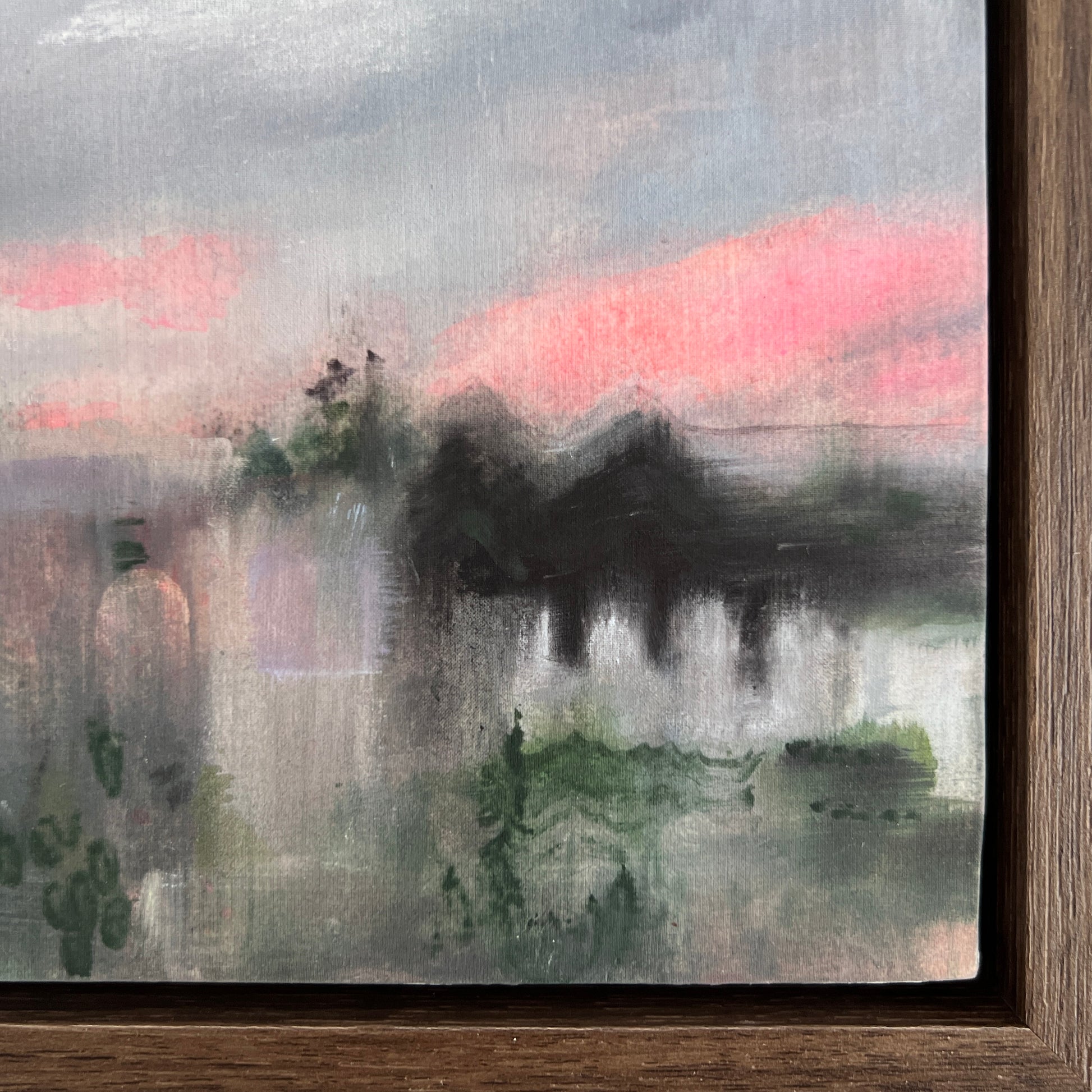 framed in a dark Wenge tray frame